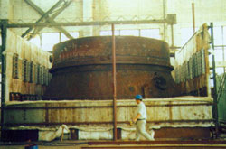 | (3) 二甲苯塔的锥体过渡段焊后退火搭建的组装式电阻炉。 炉膛尺寸:长7.5m×宽7.5m×高4.5m |